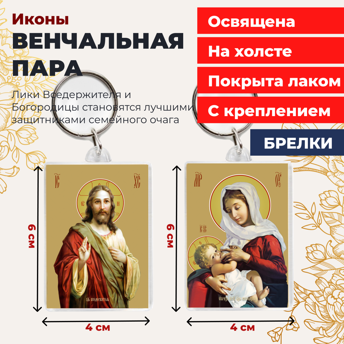 - Освященная икона на брелке "Венчальная пара"